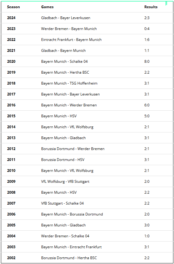 The record before the start of the 2025 Bundesliga season: In the 23 Bundesliga opening games played to date, the champions have never lost!