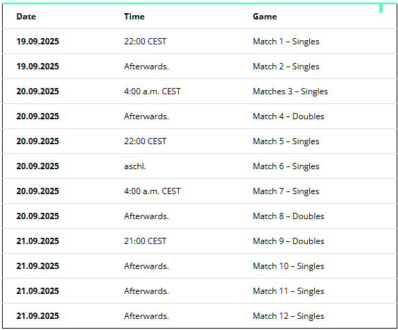 Although Team World also has two top 10 players in its squad in Taylor Fritz and Alex de Minaur, the European team is better positioned at the back of the field – if you take the world rankings as a reference. All Europeans on the 2025 Laver Cup schedule are ranked in the top 30.