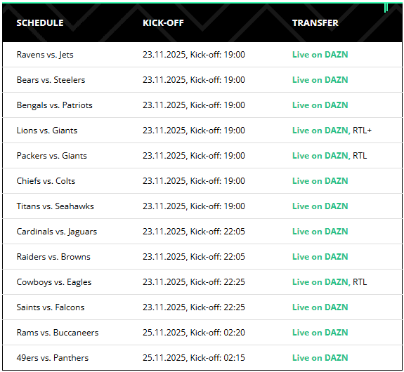 NFL Week 12 Games 2025