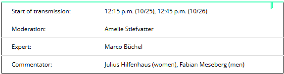 Amelie Stiefvatter will host the live broadcasts on ZDF’s Sölden TV coverage. Marco Büchel will be on site as an expert on both days. Julius Hilfenhaus (women) and Fabian Meseberg (men) will commentate on the Sölden 2025 races on ZDF.