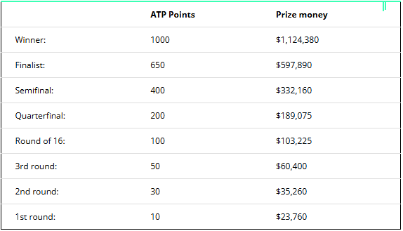 In addition to a beautiful trophy, the tournament winner will receive $1,124,380 in prize money and 1,000 points for the world rankings. The runner-up will console himself with €597,890 and 650 points for his ATP ranking after losing the final.