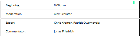 The team of experts at his side consists of Christoph Kramer and Patrick Owomoyela, who will replace Matthias Sammer, who, as an official BVB consultant, is not allowed to analyze any Borussia Dortmund games on TV.