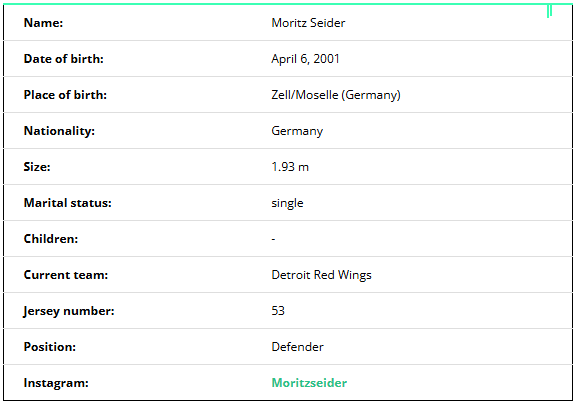 This contract was valid from 2019 to 2023 and earned him a total of almost 6 million dollars. From 2024, Moritz Seider received a significantly longer and more lucrative contract with the traditional team from Detroit.