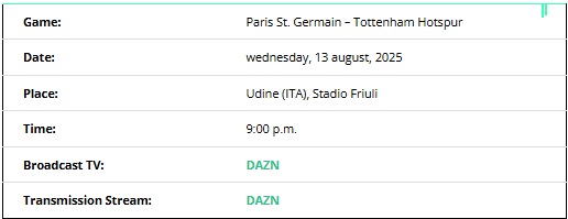 - Livestream: DAZN will show the 2025 UEFA Super Cup via livestream in the app and also on the linear TV channel DAZN 1.