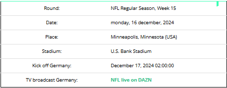 The data-based starting position is also clear: The statistics speak massively against Chicago. The Bears have lost their last 13 games against NFC teams on a winning streak – a negative trend that is unlikely to change on Tuesday.