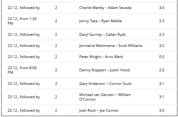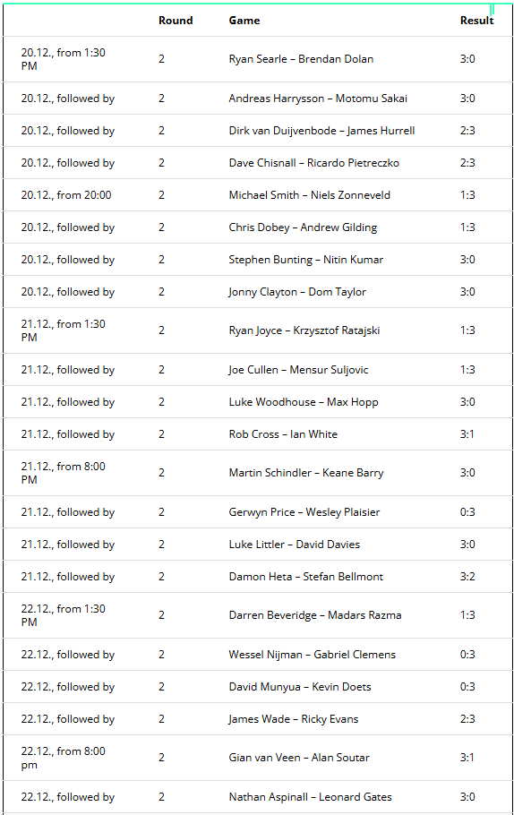 Darts World Championship Schedule: 2nd Round